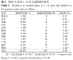 Incidence of cerebral palsy in 1-6 years old children in 12 provinces and cities in China