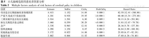 Multiple factors analysis of risk factors of cerebral palsy in children