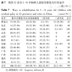 Ways to rehabilitation for 1-6 years old children with cerebral palsy in 12 provinces and cities in China [cases(%)]