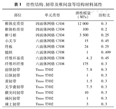 骨性结构、韧带及椎间盘等结构材料属性