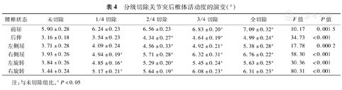 分级切除关节突后椎体活动度的演变(°)