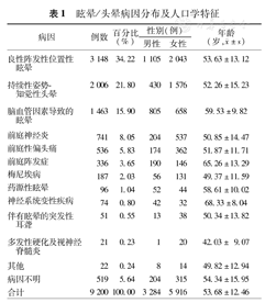 | 良性阵发性位置性眩晕 | 3 148 | 34.22 | 1 105 | 2 043 | 53.63±13.12 |
