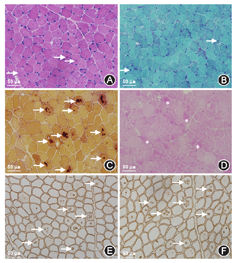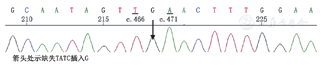 患者男性,15岁,因"发热伴头晕6 d"于2014年5月18日来我院就诊。患者于入院前6 d无明显诱因出现发热,体温最高达38.5 ℃,伴咳嗽咳痰,头晕,乏力,恶心呕吐,呕吐物为胃内容物,无胸痛、胸闷,无肩背部放射痛,无头痛,无意识丧失,就诊于当地医院,给予抗感染、抑酸等治疗,体温恢复正常,仍间断出现头晕、恶心呕吐。遂来我院就诊。患者自幼体弱,易感冒,体力较正常同龄者差,活动后易出现心悸、乏力、气喘,读书成绩不及格。入院时体检:智力低,发育差,身高160 cm,体重42 kg。双肺呼吸音粗,未闻及干、湿性啰音,心律齐,各瓣膜听诊区未闻及杂音,肝于肋下4 cm、剑突下5 cm可触及,脾肋下未触及。双上肢近端肌力Ⅴ级,双下肢近端肌力Ⅳ+级,远端肌力Ⅴ级。四肢腱反射减弱,病理征阴性。家族史:父母及姐姐体健,家族中其他成员无类似疾病。入院后主要生化检查:肌酸激酶2 626 U/L(正常值38~174 U/L),肌红蛋白1453 ng/ml(正常值0~85 ng/ml),肌酸激酶同工酶62.3U/L(正常值0~24.0 U/L),乳酸脱氢酶1 718 U/L(正常值120~300 U/L), ALT 1 043 U/L(正常值9~50 U/L),AST 882 U/L(正常值15~40 U/L)。抗核抗体、抗U1核糖核蛋白、抗Sm、抗SSA、抗SSB、抗Scl-70、抗Jo-1、抗r核糖核蛋白、抗双链DNA抗体均为阴性。类风湿因子、抗链球菌溶血素O、抗环瓜氨酸肽抗体呈阴性。肝炎筛查+戊型肝炎抗体测定结果为阴性。EB病毒、单纯疱疹病毒Ⅰ型及人巨细胞病毒核酸检测阴性。梅毒螺旋体抗体和人类免疫缺陷病毒抗体阴性。红细胞沉降率7 mm/h(正常值<15 mm/h),C反应蛋白13.1 mg/L(正常值0~8.0 mg/L),第三代促甲状腺素、总三碘甲状腺原氨酸、总甲状腺素、游离甲状腺素及游离三碘甲状腺原氨酸水平正常。辅助检查:胸部+全腹CT结果示:(1)全心增大,肺动脉增粗,宽径约3.5 cm;(2)两肺上叶可见多发斑片状密度增高影,以左肺上叶为主,边缘模糊考虑炎症;(3)心包积液,右侧胸腔少量积液;(4)肝脏增大,腹腔积液。心脏超声结果示:(1)室间隔非对称性肥厚(图1A),右心室壁及右心室节制索肥厚(图1B),考虑肥厚性心肌病;(2)二、三尖瓣轻中度关闭不全;(3)左心室正后壁基底段、中段及下壁基底段运动消失;(4)左心室收缩功能减低、舒张功能异常(Ⅲ度,限制性充盈),左心室充盈压增高;(5)右心室收缩功能及整体功能减低;(6)少量心包积液。心电图示:窦性心律,预激综合征图形,心率78次/min,Ⅰ、Ⅱ、Ⅲ、aVF、aVl、V1-6导联ST段压低,T波倒置。24 h动态心电图结果:窦性心律,平均心率为76次/min,最小心率55次/min,最大心率111次/min。室性早搏140个,呈单发、成对及室性心动过速。室上性早搏99个,呈单发、成对及房性心动过速。无心室停搏。ST-T段异常。肌电图示被检双胫前肌、右股三头肌、右三角肌呈肌源性损害。肱二头肌肌肉活体组织检查HE染色可见肌束内结缔组织无明显增生,肌间小血管壁无增厚,未见炎性细胞浸润。部分肌纤维胞质内有典型自噬空泡形成(图2A),胞质内可见不规则形状的嗜碱性物质沉积,肌纤维大小不等,直径20~50 μm,未见肌纤维变性,无核内移增加,未见不透明纤维和环状纤维。改良Gomori三色染色可见空泡样肌纤维(图2B),部分胞质内可见蓝紫色物质沉积。四氮唑还原酶染色和琥珀酸脱氢酶染色可见部分区域氧化酶缺失及中央轴空样肌纤维。非特异性酯酶染色可见空泡区域酶活性增强,部分肌纤维内可见棕黑色物质沉积(图2C)。酸性磷酸酶染色未见明显异常。油红O染色示个别肌纤维脂滴增多。过碘酸希夫染色部分肌纤维内阳性物质不均匀沉积(图2D)。ATP酶染色显示两型肌纤维呈镶嵌排列。免疫组织化学分析提示:肌纤维dystrophin(+),dysferlin(+),sarcoglycan(+)c-dystrophiny和α-sarcoglycan染色可见肌细胞内膜性自噬空泡形成(图2E、图2F)。电镜观察显示肌纤维内出现大量的膜性空泡,部分空泡内存在大量糖原颗粒、溶酶体颗粒以及自噬碎片,空泡周围有散在分布的糖原颗粒(图3A、图3B)。初步考虑为糖原贮积症、Danon病可能。蛋白质印迹证实lamp2蛋白缺失,送检肌肉标本进行LAMP2基因突变检测。检测结果:在LOVD数据库进行检索分析,送检标本LAMP2基因外显子4发现序列异常,c.467_470delTATCinsG,该改变尚无报道,属于移码突变(图4),该位点改变可导致编码氨基酸提前终止,正常人群中无此突变,临床意义明确,证实患者为Danon病。然而由于家属经济以及其他原因,未能进一步对患者基因进行家系验证,明确发病风险。追踪回访患者,令人遗憾的是患者出院仅半个月猝死,患者母亲偶感心悸,无其他不适。