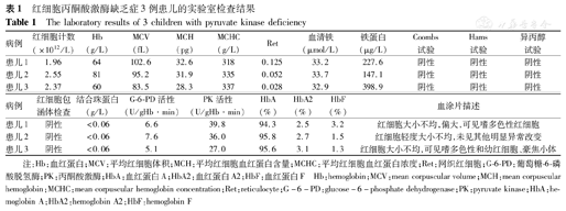 The laboratory results of 3 children with pyruvate kinase deficiency
