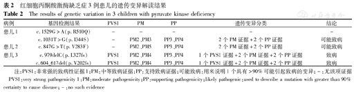 红细胞丙酮酸激酶缺乏症3例患儿的遗传变异解读结果