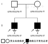 将遗传分析结果汇总到家系图(图5),生育力正常的双亲(父:Ⅰ-1,母Ⅰ-2)均是5T突变的杂合子,而患有CBAVD的两兄弟(先证者,兄:Ⅱ-3,弟:Ⅱ-4)均遗传获得了双亲的致病等位基因,组合成纯合子,提示5T纯合突变与CBAVD发病相关。