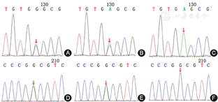 基因检测:患儿甲羟戊酸激酶(MVK)基因存在2个杂合变异:(1).c.827A>G,p.E276G,为错义变异,经家系验证分析提示患儿父亲为该位点杂合变异,患儿母亲该位点无变异;(2).c.1127G>A,p.G376D,为错义变异,经家系验证分析提示患儿母亲该位点杂合变异,患儿父亲该位点无变异(图4)。
