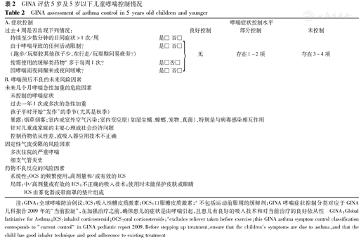 GINA评估5岁及5岁以下儿童哮喘控制情况