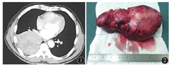 1930年Doege和Potter首先描述了伴有低血糖症状的胸内巨大肿块,此后非胰岛素瘤性低血糖症(NICTH)被称作"Doege-Potter综合征"[4,5]。SFTP患者中3%~14.3%可伴发低血糖症,甚至低血糖可为首发症状[3,6,7]。本例患者以阵发性低血糖性昏迷为首发症状,临床甚为少见,文献仅见个案报道。SFTP伴低血糖的具体机制目前尚不明确。2001年Chang等[8]认为其机制包括:(1)肿瘤压迫自主神经;(2)肿瘤细胞耗糖增加;(3)抑制糖原异生;(4)产生胰岛素样物质IGF-Ⅰ、IGF-Ⅱ。本例患者术前1个月多次发作性意识障碍,发作时血糖波动于1.7~2.1 mmol/L,术后血糖恢复正常,未再出现意识障碍。这些表现支持低血糖昏迷为SFTP的伴发症状。本例患者肿瘤巨大,病史较长,但出现低血糖昏迷症状仅1个月,考虑低血糖原因与肿瘤细胞消耗、肿瘤压迫自主神经、肿瘤抑制糖原异生及产生胰岛素样物质等多种因素有关。