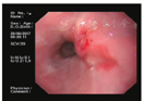 患者,男,58岁,因上腹部隐痛1年、加重1个月于2017年6月29日入院。患者于1年前无明显诱因出现上腹部隐痛不适,无呕血,间断黑便,1个月前症状明显加重,伴反酸、烧心。入院查体:无贫血貌,未触及颈部淋巴结肿大,上腹部压痛,无反跳痛及肌紧张。胃镜显示:食管距门齿39~41 cm处可见不规则溃疡性病变,环管腔近1/4,质脆易出血,见图1。内镜活检病理示:低分化腺癌,见图2。神经原特异性烯醇化酶(NSE)29.94 ng/ml,余肿瘤标志物无异常,胸部CT等检查未发现远处转移病灶。术前诊断:胃食管结合部腺癌;完善术前准备后全麻下行近端胃及部分食管切除、胃食管吻合术,术后病理回报:食管恶性肿瘤呈腺样及实性结构,局部见筛状结构,神经可见累及,脉管未见癌栓,侵及食管壁全层,未侵及胃食管交界处。获检淋巴结14枚,无淋巴结转移癌发生,pTNM分期:T3N0M0,ⅡA期。免疫组化:CK7(+),CK5/6 P63 P40(部分+),E-cad(+),CD117(小灶弱+),EGFR(+),P53(60%+),HPV16(-),EBER(-),Ki67(40%),CK20(-),Villin(局部+),TTF-1(+),NapsinA(-);形态学结合免疫标记结果符合食管腺样囊性癌,见图3,图4。术后恢复良好,顺利出院。术后患者拒绝行辅助化疗,转入放疗科行放射治疗(剂量50 Gy),术后3个月随访:患者状态较好,无进食困难,复查PET-CT未发现肿瘤复发转移灶。