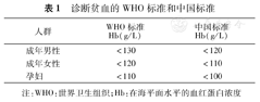 | 人群 | WHO标准Hb(g/L) | 中国标准Hb(g/L) |