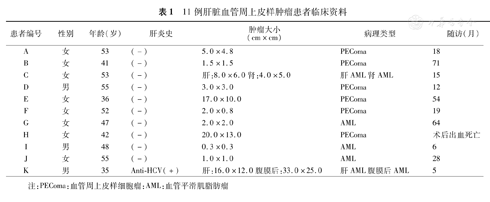 11例肝脏血管周上皮样肿瘤患者临床资料