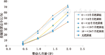 不同亚组幼儿在几个相同年龄(0.5岁、1.0岁、1.5岁、2.0岁)获得的日间排尿控制的结果相似,即出生12个月内对使用尿不湿婴幼儿进行把尿训练,明显高于12个月以后开始把尿训练和未把尿训练组(表3)。折线图更可直观地反映这种关系,见图1。