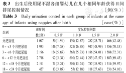 Daily urination control in each group of infants at the same age of infants using nappies after birth [case(%)]