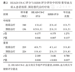 HEAD-US-C评分与HJHS评分评价中间型/重型血友病A患者按需、预防替代治疗疗效