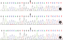 注:A:患儿,可见c.1824C>T杂合突变;B:患儿父亲,未见突变;C:患儿母亲,未见突变 A:the patient,showing the c.1824C>T heterozygous mutation;B:the patient′s father,no mutation was found;C:the patient′s mother,no mutation was found