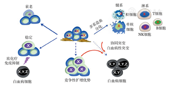 CH是指具有分子遗传学突变特征的HSC,通过多系造血分化,形成携带重现性生物学标志的终末分化成熟血细胞。因此,CH是一种非恶性扩增的造血模式,具有竞争性克隆优势和多系造血分化成熟能力两大核心特征。
