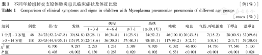 Comparison of clinical symptoms and signs in children with Mycoplasma pneumoniae pneumonia of different age groups[cases (%)]