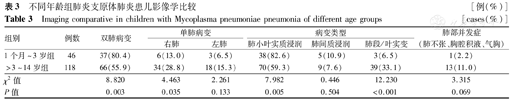 Imaging comparative in children with Mycoplasma pneumoniae pneumonia of different age groups[cases(%)]