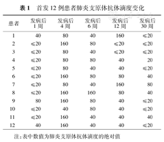注:表中数值为肺炎支原体抗体滴度的绝对值