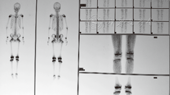 行发射型计算机断层扫描(ECT)检查,静脉注射显像剂99m锝-亚甲基二膦酸盐注射液(99mTcO4-MDP),剂量为20.0 mCi,3 h后行前、后位全身骨骼平面显像。结果显示双侧股骨下端、胫腓骨上端在血流、血池相放射性分布对称性增加,延迟相及全身骨显像见双侧肱骨头、双侧股骨下端及胫腓骨上端等干骺端对称性放射性浓聚,结合病史考虑神经母细胞瘤转移性骨肿瘤病变可能(图3)。行腹部超声提示未见明显异常。