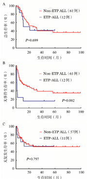 分析成人早期前体T细胞急性淋巴细胞白血病(ETP-ALL)的临床、实验室特征及预后情况。