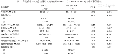 早期前体T细胞急性淋巴细胞白血病(ETP-ALL)与Non-ETP ALL患者临床特征比较