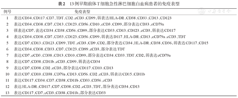 13例早期前体T细胞急性淋巴细胞白血病患者的免疫表型