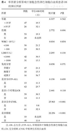 单因素分析影响T细胞急性淋巴细胞白血病患者OS的预后因素