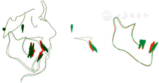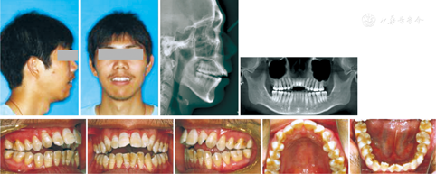 该患者下颌平面角偏高,牙槽骨后段垂直向过度发育,因此,对于本病例而言,压低后牙是更合适的治疗方法,可使下颌逆时针旋转,这种改变一方面可以改善前牙开