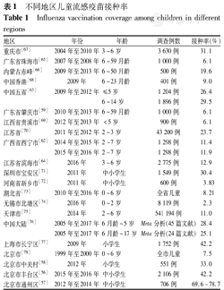 不同地区儿童流感疫苗接种率