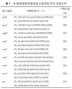 36株铜绿假单胞菌毒力基因的PCR引物序列