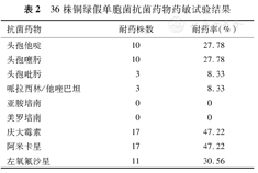 36株铜绿假单胞菌抗菌药物药敏试验结果