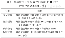 实体瘤的PET疗效评价标准(PERCIST)肿瘤疗效分类(2009年)