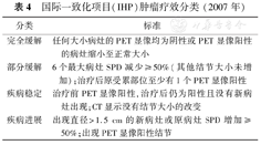 | IHP | PET显像阴性病灶或PET显像阳性的正常大小病灶 | 6个最大病灶缩小≥50% | 新出现PET显像阳性病灶 | PET显像示新病灶≥1.5 cm或原病灶扩大≥50% |