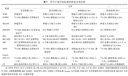 | 分类 | 基于PET/CT的标准 | 基于CT的标准 |