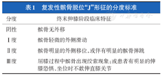 根据终末伸膝阶段髌骨外移严重程度,我们提出一种新的"J"形征分度标准(表1)。随分度增加,髌骨外移逐渐明显(Ⅰ度和Ⅱ度);外移达到一定程度即出现完全髌股关节脱位(Ⅲ度),临床表现为屈膝时髌骨绞索,少数表现为明显的伸膝恐惧,坐位时不敢伸直膝关节。