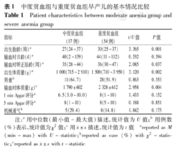 中度贫血组与重度贫血组早产儿的基本情况比较