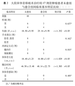 异体骨长度(cm, ±s) | 18.40±5.25 | 16.00±3.83 | t=1.029 | >0.05 | |