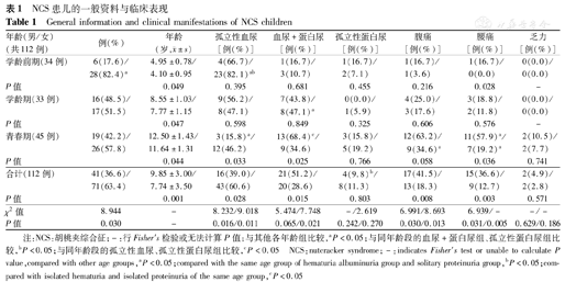 回顾性分析重庆医科大学附属儿童医院肾内科2008年1月至2018年1月收治的单纯NCS 112例患儿的临床资料,并进行追踪随访。