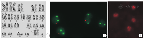 克氏综合征又称XXY综合征,发病率为男性新生儿的1/1000,是引起男性性发育异常最常见的性染色体病。额外的X染色体产生于减数分裂时X染色体的不分离,患者双亲发生不分离概率均等。新生儿21三体综合征的发病率为1/800~1/600,是最常见的染色体数目异常性疾病。与其他染色体数目异常综合征(13三体、18三体、XYY综合征等)一样,细胞分裂过程中染色体不分离是21三体综合征的遗传病理,绝大多数不分离来源于母方。典型病例根据其特殊面容、皮肤纹理特点和智能低下,不难诊断,半数以上的患者可伴有先天性心脏病,明确诊断需进一步行染色体核型分析或FISH检测。
