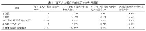| 项目 | 每百万人口器官捐献率(PMP) | 1 339单位下的实际捐献者总人数(人) | 2017年中国捐献案例平均产出器官(个) | 美国捐献案例平均产出器官(个) |