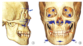 面部衰老是面部骨骼、肌肉、韧带以及其他各种软组织共同变化的结果,其中骨骼的变化又极大地影响着其他组织的表现。面部骨骼的老龄化改变有几个基本的特点:持续终生的变化[1,2,3,4,5,6,7],包括骨骼的持续生长、选择性吸收及缓慢移行;面部骨骼并非整体均衡地按比例变化,而是具有区域性的特征[3,8,9];骨骼变化的方式在不同年龄、不同性别和不同人种中存在较大的差异。