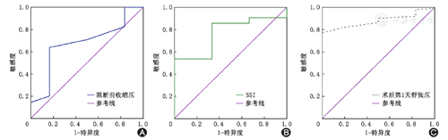 注:图A:阻断前收缩压;图B:术中返流压与基础收缩压的比值(SSI);图C:术后第1天舒张压