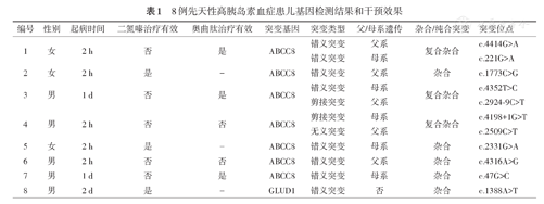 8例先天性高胰岛素血症患儿基因检测结果和干预效果
