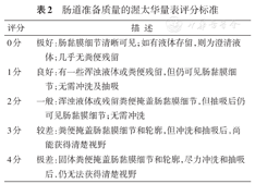 | 2分 | 肠道黏膜观察良好,但残留少量污斑、混浊液体、粪便 |