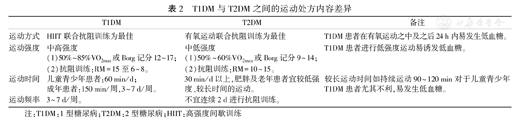 | 运动方式 | HIIT联合抗阻训练为最佳 | 有氧运动联合抗阻训练为最佳 | T1DM患者在有氧运动之中及之后24 h内易发生低血糖。 |