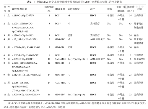 11例GATA2突变儿童骨髓增生异常综合征(MDS)患者临床特征、治疗及转归