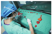 本中心2013年成立挑检淋巴结专业小组,由科室研究生组成。团队成员经过手术医生或资深医生1周左右的专业培训和考核后,单独进行全天候的胃癌标本淋巴结挑检。为了保证数据的客观性,规定参与手术的研究生不能进行该台手术标本淋巴结的检取。在手术室设置了专门的淋巴结分拣区,配备专门的操作桌子、器械和布巾,见图2。