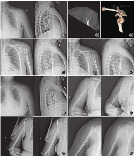 严重的骨质疏松患者发生肱骨外科颈骨折时,可存在骨质压缩和大面积缺损,对弹性钉固定的稳定性造成影响,甚至可影响骨折的愈合。采用闭合复位经皮弹性钉固定时肩部无切口,不能对该类患者行植骨支撑,此术式存在一定局限性。所以临床工作中,可结合CT及其三维重建技术、3D打印技术对一些复杂的骨折类型进行判断,严格掌握手术的适应证。本组患者样本量小,选择偏谨慎,且部分患者随访时间较短,对于该术式的远期并发症和疗效仍需要进一步观察。未来拟开展此技术与锁定钢板或其他髓内钉固定术式的疗效对比研究,对于肱骨头内弹性钉固定状态的生物力学研究也有待进一步开展。